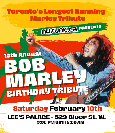 Toronto's longest-running Bob Marley Birthday Tribute is now in its 18th incredible year! The Bob Marley. Birthday Tribute presents the who’s who of Toronto’s Roots Rock Reggae scene performing a heartfelt tribute to one of the greatest musical and political figures of our time.