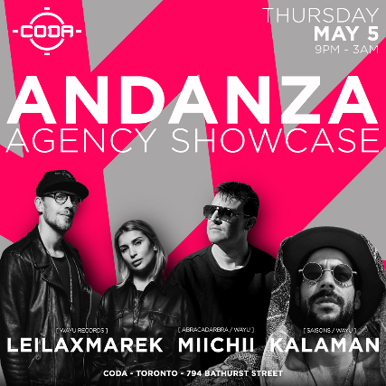 On Thursday May 5th, ANDANZA Agency will bring its first-ever showcase to Coda Toronto, featuring all three of the agency's initial roster.