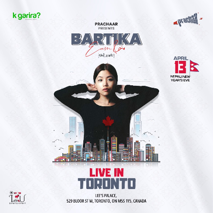 PrachaarCanada presents the Bartika Eam Rai Canada Tour, featuring Nepal’s beloved indie artist Bartika Eam Rai alongside Yugal Gurung & Diwas Gurung. Known for her soulful lyrics and evocative music, Bartika has redefined Nepali indie. Yugal’s raw, introspective sound and Diwas’s fusion of folk and alternative add to this unforgettable lineup.