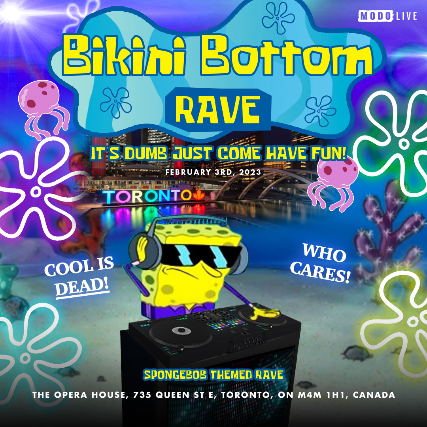 Pull out your striped sweaters and floral swim trunks Toronto, because this SpongeBob SquarePants-themed event is floating down to Opera House on February 3rd, brought to you by the creators of the viral Shrek Rave! This 19+ event promises that even though it's dumb, you should just come and have fun. Tickets are on-sale now!