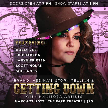 Brandi Vezina is a Winnipeg singer/songwriter whose authentic country roots are intertwined with rock and the blues. She is a natural born performer who comes from a musical Metis family. Her biggest inspirations include Johnny Cash, The Rolling Stones, Janis Joplin and Miranda Lambert.