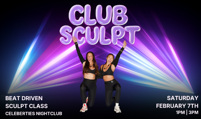 CLUB SCULPT - 50 minute full body sculpt workout, to the beat of the music.... In an actual club!! This is where your d-floor dreams meet mindful movement for the most fun magical 50 minute workout of your life. You’ll have some time after class to mingle, make new best friends, and enjoy our sponsored booths.