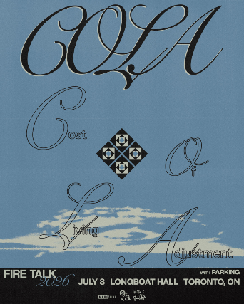 One of the goals with C.O.L.A. was to have the melody guide the lyrics. This is a distinct shift from the sprechgesang that has been an anchor for many of Darcy’s earlier records. Here, the vocal melodies are on the same level as all of the other melodies on the record. But the lyrics are no less poetic, no less precise than anything Darcy has written before (“It’s not,” he jokes, “like we’re making a Cocteau Twins song.”) The result is a record that is ruthlessly aware of all of its parts, and treats them all as equally important. C.O.L.A. is a record that speaks to itself: where all of its parts are in direct conversation with each other. Sounds do not blur, even when they are expansive. It is abstract, oblique, sometimes strange, whatever you want to call it. But it is also beautiful, in the classic sense. Beautiful like a painting can be beautiful. Really, really gorgeous. Almost chiseled in the way it plays so deliberately with experimentation. On “Skywriter’s Sigh,” for example, things sizzle and flicker. It touches on the sublime. It is Cola, the band, at their very best. Cola - Cost of Living Adjustment - Bio