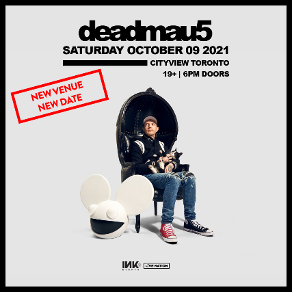DEADMAU5 @ CityView, 20 Polson St (across the street from Rebel) Saturday, October 9, 2021.  Doors 6:00PM *This event has been rescheduled from Sunday, October 10, 2021. **This event has been relocated to CityView, located across the street from Rebel. ***This event is now an open-air/outdoor event.  No cars will be permitted in the festival area.   19+ Rain or shine event. Government ID Required. Bottle Service: http://rebeltoronto.com/bottleservice/ ALL SALES ARE FINAL. NO REFUNDS. Stay connected: IG: @INKEvents / @RebelToronto TW: @Rebel_Toronto SC: RebelToronto
