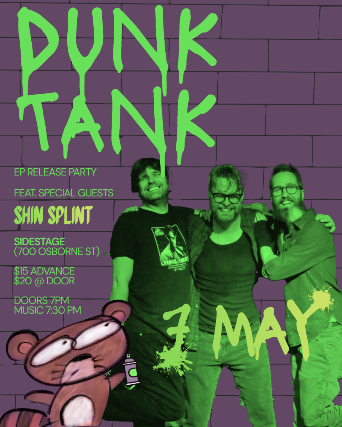 Thursday, May 7, 2026 Dunk Tank EP Release! with Shin Splint Doors 7PM | Music 7:30PM $15 Advance $20 at the Door ALL AGES welcome