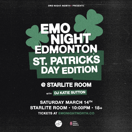 Edmonton! Join us on Saturday March 14th for St. Patrick's Day. We’re spinning your fav classic emo anthems + MORE. See you there!