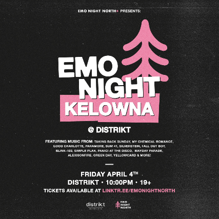KELOWNA, we’re coming back to your city to throw down at Distrikt Nightclub! We’re spinning classic emo bangers + MORE all night. Tell all your friends!