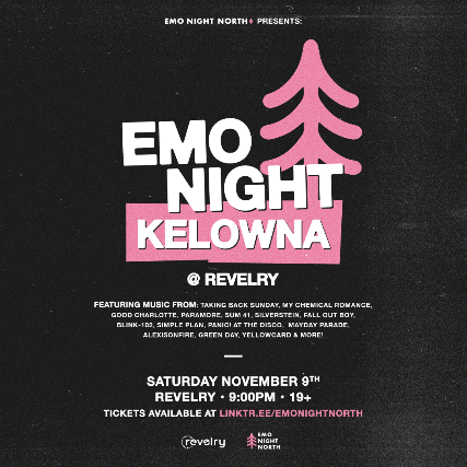Kelowna, on Saturday November 9th we're hosting our first emo night in your city! We will be spinning your fav classic emo anthems all night long. See you there!