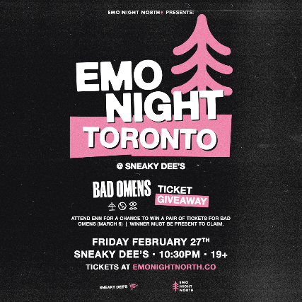 Toronto, join us on Friday February 27 at Sneaky Dee's! We will be giving away a pair of tickets to see Bad Omens on March 6th at Scotiabank Arena. The winner must be in attendance to claim their prize!