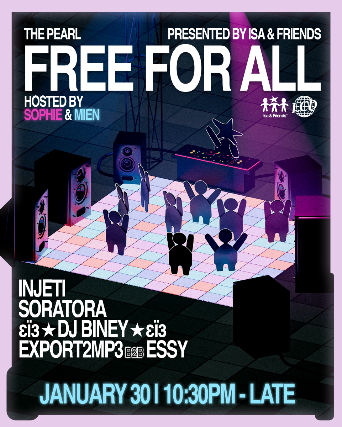 FFA JANUARY IS HERE ᕦ(ò_óˇ)ᕤ   In collaboration with LCD MAGAZINE -- we bring you a full day event market during the day, rave at night.    HOSTED BY @sophiepowerrrr & @mademoiselle_mien    Lineup: INJETI SORATORA εїз ☆ DJ BINEY ☆ εїз EXPORT2MP3 B2B ESSY   100 TICKETS ON US
