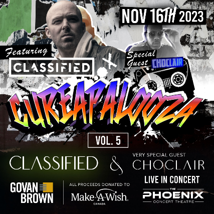 Govan Brown has partnered with Make A Wish Canada for a unique event that we would love for you to be a part of. Govan Brown will be hosting the fifth annual Cureapalooza, a charity concert in support of Make A Wish Canada. Taking place at The Phoenix Concert Theatre in downtown Toronto, the concert will feature performances by Classified and Choclair. The evening promises to be a memorable one so dress comfortable and enjoy the tunes!