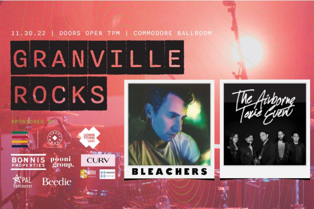 Celebrate the rebirth of Granville with an incredible night of music! Join us on November 30, 2022 at the historic Commodore Ballroom for live performances from Bleachers & The Airborne Toxic Event.