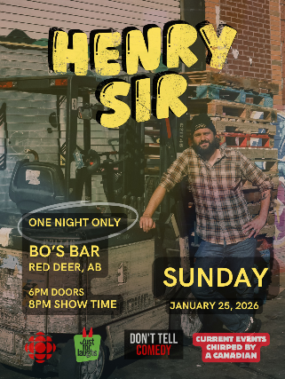 Henry Sir: Buddy's Back In Berta Tour hits Red Deer. Henry Sir is an All Canadian basketball player turned comedian and writer. Born and raised in Edmonton, Alberta, he now lives in New York where he performs at the top clubs in the city like The Comedy Cellar and Gotham Comedy Club while touring North America. He's been featured on Comedy Central, Just For Laughs New Faces, Don't Tell Comedy, and CBC New Wave of Stand Up. Henry is the host of the satirical political podcast, The Freedom Hour, and the popular social media series, Current Events Chirped By A Canadian.