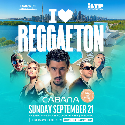 Join us for the biggest Reggaeton party Canada has ever seen. I Love Reggaeton inside the world famous Cabana Toronto. Let’s end Summer 2025 with a bang.