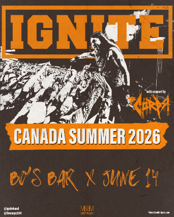 SHOP BEER PRESENTS IGNITE & THE CORPS w. GUESTS CANADA SUMMER TOUR 2026 JUNE 14. 2026 BO'S BAR & STAGE DOORS 6PM. SHOW 8PM 18+ TICKETS $27.50 + SC