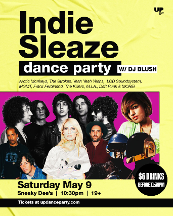 On Saturday May 9th join us for an Indie Sleaze Dance Party at Sneaky Dee's. We're spinning the music of the Arctic Monkeys, The Strokes, Yeah Yeah Yeahs, LCD Soundsystem, MGMT, Franz Ferdinand, The Killers, M.I.A, Daft Punk & MORE!