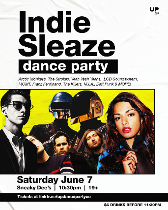 On Saturday June 7th join us for an Indie Sleaze Dance Party at Sneaky Dee's. We're spinning the music of the Arctic Monkeys, The Strokes, Yeah Yeah Yeahs, LCD Soundsystem, MGMT, Franz Ferdinand, The Killers, M.I.A, Daft Punk & MORE!