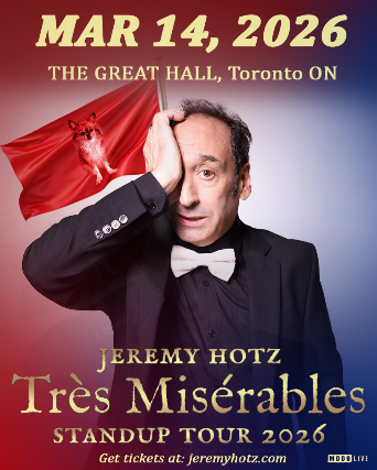 Jeremy Hotz invites you to join him and his renowned dog, Shack on their journey across North America as they celebrate the milestone of his 10th national tour titled “Très Misérables!”