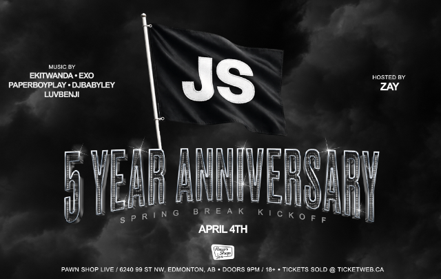 Jeune Studios  5 Year Anniversary - Spring Break Kick Off Saturday April 4th, 2026 Hosted By ZAY Music By Ekitwanda // Exo // Paperboyplay // DJBabyley // Luvbenji Doors at. 10pm 18+ Event.