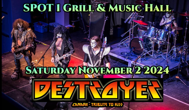 Don't miss North America's ulitmate KISS tribute show featuring "DESTROYER". one night only LIVE at SPOT1 GRILL & MUSIC HALL. The look and sound of the hottest