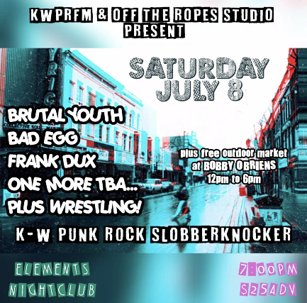 Bands: Brutal Youth, Cerebral Scrub (Return Show), Bad Egg, Frank Dux