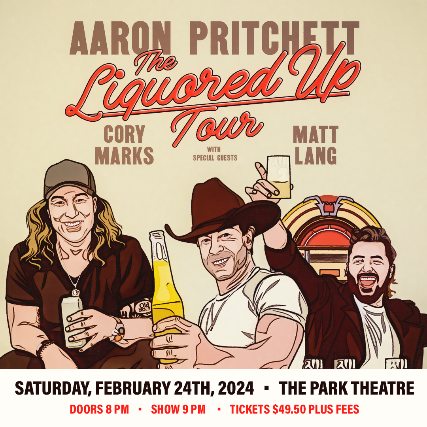 Having left an indelible mark on Canadian country music over the past two decades, Aaron Pritchett is embarking on his 2024 cross-Canada Liquored Up Tour, covering 30 dates from coast to coast. The rising country music stars Matt Lang from Quebec, and the critically acclaimed Cory Marks are joining him.