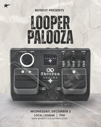 This will be a contest-style show featuring 2 competitions; an invitational competition, and an open one. The event will take place in the Local Lounge December 3rd from 7 to 10. 4 of the best local live-loopers performing for 25 minutes each. They will also speak briefly about their gear and Art, and answer any questions. From these performances, the audience will pick their favorite looped-song, and a $200 prize will be awarded. Ticket holders, and one BONDST staff member will vote for a winner. (1 ticket=1 vote)