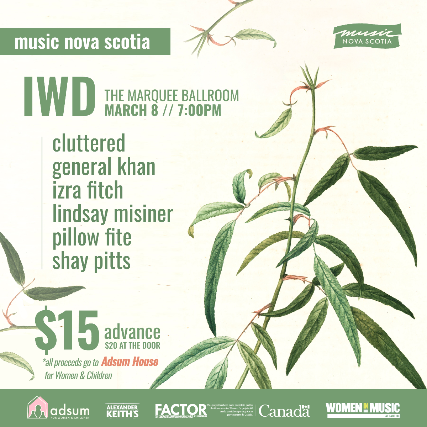 The International Women’s Day showcase will be held at The Marquee Club with performances from Cluttered, General Khan, Izra Fitch, Lindsay Misiner, Pillow Fite and Shay Pitts. Doors open at 7PM the show will start at 7:30PM. Tickets are $15 advance, $20 at the door all proceeds are being donated to Adsum for Women and Children.