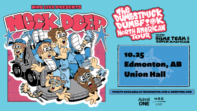 MRG Live Presents:  NECK DEEP: THE DUMBSTRUCK DUMBF!@K NORTH AMERICAN TOUR W/ Like Rosesn // The Home Team Doors @ 6:30pm SHow @ 7:30pm All Ages. Valid 18+ Government Photo ID Required upon entry to access alcohol service. Artist Presale: Wednesday, July 10 @ 10:00 AM MT MRG Presale: Thursday, July 11 @ 10:00 AM MT On Sale: Friday, July 12 @ 10:00 AM MT VIP Table Service Inquiries Email: gm@unionhall.ca