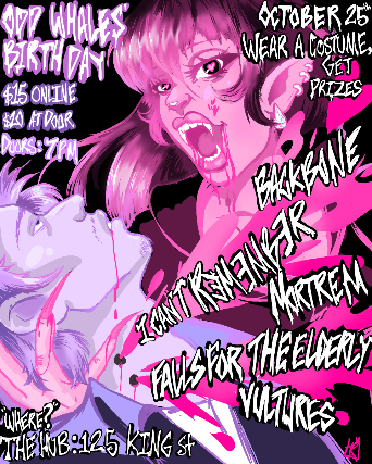 Hit the floor with live performances from Vultures, Falls for the Elderly, Mortrem, I Can’t Remember, Whine Problems, and Backbone. Come in costume for your chance to win prizes and celebrate with our community in true Odd Whale style.