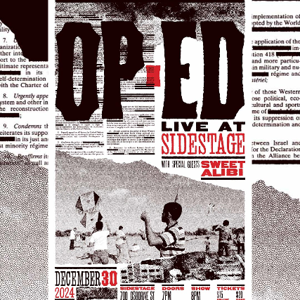 OP-ED is a Palestinian-led heavy rock band from Winnipeg. This show celebrates the release of our debut album In The Storm, which channels the lived experiences and storytelling of our Palestinian songwriter Tarek Abdel Aziz into songs of love, resistance, and human dignity, reflecting on the ongoing genocide and humanitarian crisis in Gaza.