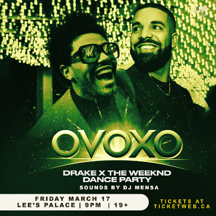 Drake's not Irish. The Weeknd isn't Irish. But on Friday March 17th, we're all Irish! Back by popular demand, we're throwing another OVOXO: Drake x The Weeknd Dance Party. This time we're doing it at Lee's Palace on St. Patrick's Day. DJ Mensa will be spinning bangers by Drake, The Weeknd + hop hop and R&B hype tracks all night long. See you there!