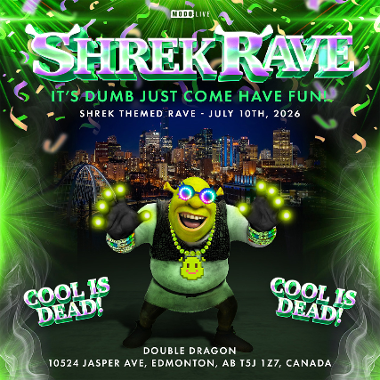 SHREK RAVE RETURNS! Unleash your inner ogre this summer! IT'S DUMB JUST COME HAVE FUN. WHO CARES. COOL IS DEAD. idk hahaha. Tickets on-sale now!