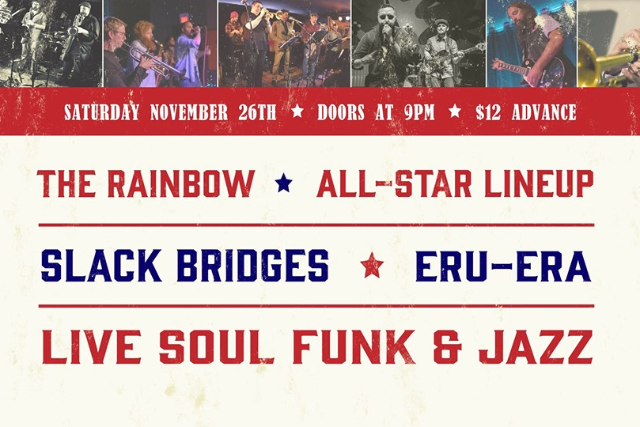 Get ready for the funkiest night of The Rainbow Bistro's 35th Anniversary Series. On Sat, November 16th, two 7-piece bands will be taking the stage for a night of soulful, filthy, sexy, unadulterated soul funk.