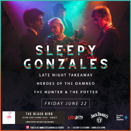 Live Acts Canada and Jack Daniel's presents Sleepy Gonzales with Late Night Takeaway, Heroes Of The Damned and The Hunter & The Potter, Friday June 22nd at The Blackbird Hall in Surrey,