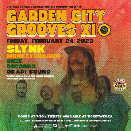 Joining Slynk for night 2 of Garden City Grooves is one of the coolest, most unique acts on the west coast, MONKEYDRAGON. MonkeyDragon is the new project from west coast legends Adham Shaikh and Buckman Coe. Featuring the luscious brass of our old friend Harvey Paris and towering trombones of Andy Cakes, MonkeyDragon fuses deep bass lines, world beat sounds and heavy dub with an unbridled sense of fun and sonic curiosity. Few live acts are able to bring people together in the name of Groove than MonkeyDragon. Also on the bill for this Friday night are Victoria's finest purveyors of quality hip-hop, RUZE RECORDS. MCs Brainiac and O P Yeti are two deftest rhymers our city has to offer, keenly observing the world around them while simultaneously digging deep into their own psyches and firing off their findings on the mic with passion matched only by their talent. With their boy Gravy Beats holding down the decks, anything Ruze Records has their name on is guaranteed quality hip-hop. We're also very excited to have our old friend OKAPI SOUND holding down the decks to start the night and keep the festivities rolling between sets. With an incredibly deep musical knowledge and impeccable taste, you know your ears are in good hands when Okapi Sound is on the 1s and 2s.