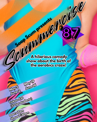 Soap Scum presents: Scummercise ’87, our steamiest show yet, we are going back to the 80’s to celebrate the birth of the aerobics craze!