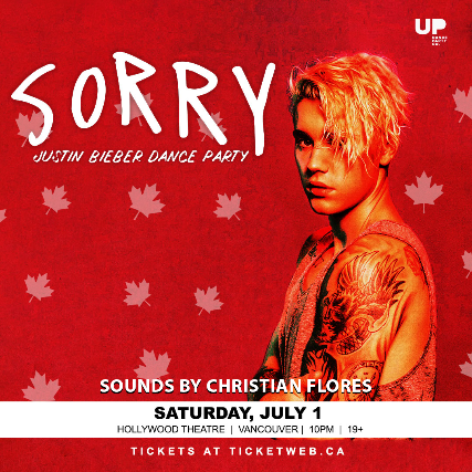 Vancouver, we're celebrating Canada Day with the music of the biggest Canadian pop icon of our generation. Get ready for Justin Bieber tracks all night long - Bangers, deep cuts and old side-bangs Bieber songs that will have you singing "baby baby baby". Say the word, on my way!