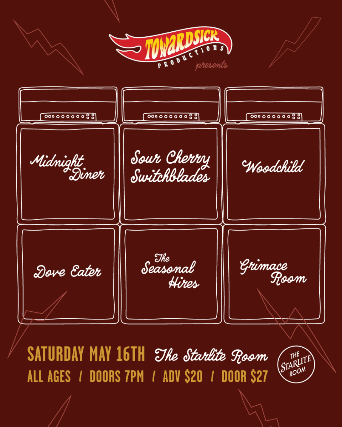 Sour Cherry Switchblades w/ Midnight Diner, Woodchild, The Seasonal Hires, Dove Eater, & Grimace Room