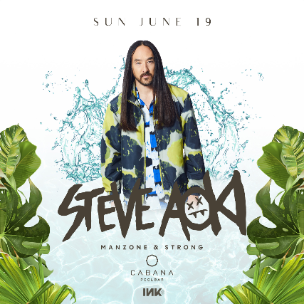 STEVE AOKI Manzone and Strong Sunday, June 19, 2022 Cabana Pool Bar This is a LEGAL AGE 19+ / RAIN OR SHINE event.  Valid photo ID required.   ALL SALES ARE FINAL. NO REFUNDS. **PLEASE NOTE** There is a delivery delay in place for your ticket purchase. Tickets will be delivered separately via email, and can also be accessed through your TicketWeb account closer to the event date. If you have not received or cannot access your tickets within 48 hours of your event date, please contact help@ticketweb.ca for assistance. For bottle service inquiries please visit: https://cabanapoolbar.com/bottleservice/ Stay connected: IG: @cabanapoolbar TW: @cabanapoolbar https://cabanapoolbar.com/