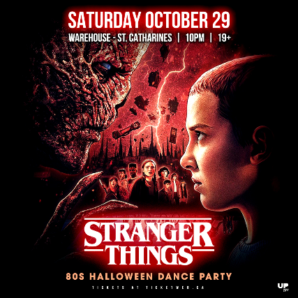 If you love Stranger Things and the 80s, you'll be running up that hill for this Halloween party! We'll be spinning tracks featured on the show + mega hits of the 80s. See you in the upside down! Early bird tickets are just $5, get yours before they're gone.
