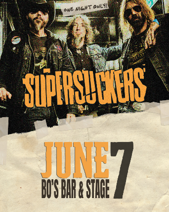 BO'S CONCERT PROMOTIONS PRESENTS SUPERSUCKERS I MUST'VE BEEN DIRTY TOUR 2026 w/ GUESTS BO'S BAR & STAGE JUNE 7. 2026 DOORS 6PM. SHOW 8PM 18+ TICKETS $27.50 + SC https://supersuckers.com/