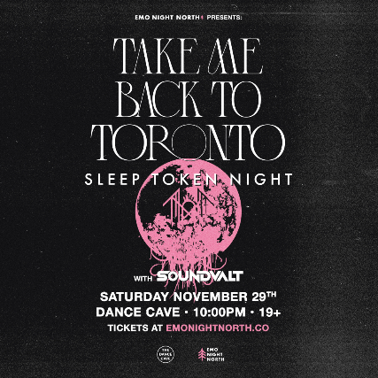 TORONTO! Sleep Token Night is back on Saturday November 29th at The Dance Cave. DJ SoundValt will be in full costume spinning Sleep Token, Spiritbox, Bad Omens, Northlane + MORE! LFG!!