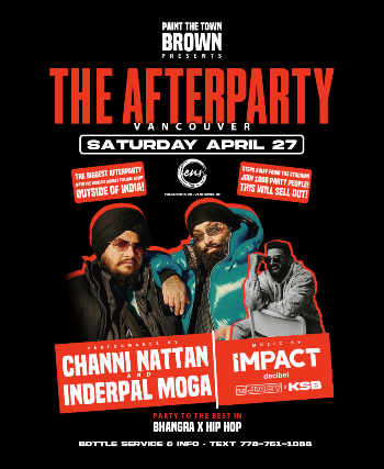 Vancouver! After the biggest Punjabi show to happen outside of India, join us for the BIGGEST afterparty in the city, inside Enso Event Centre, right beside the Stadium! The biggest Punjabi event outside of India deserves the biggest afterparty, EVER. Hosted by, and with a performance by Channi x Moga, music by Vancouver’s own @dj.impact, Edmonton’s @djjuicymusic, and Winnipeg’s @dj.ksb – This will be SLAMMED.