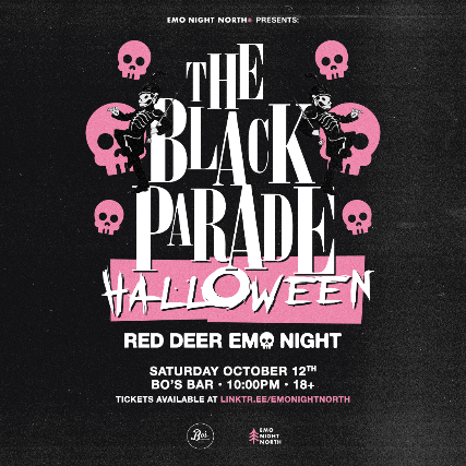 Emos of Red Deer, on Saturday October 12th, we join The Black Parade! We're celebrating the spooky season by spinning classic emo anthems + MORE.