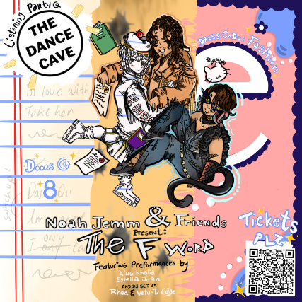 The F Word Listening Party, featuring performances by Noah Jemm, King Khalia, Estella Joan, and DJ sets by Rhea, and Velvet Code
