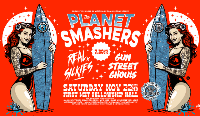 An absolute staple in the Canadian music scene, The Smashers have been slinging their two-toney, punky, new wavee party ska to the four corners of the earth with an unapologetic middle finger raised on one hand and a double mai-tai cocktail firmly gripped in the other. The band has faced way more than their fair share of adversity over the years but have always managed to maintain an unequivocally positive and often hilarious approach to life; and this admirable attitude comes shining through in every single one of their songs.