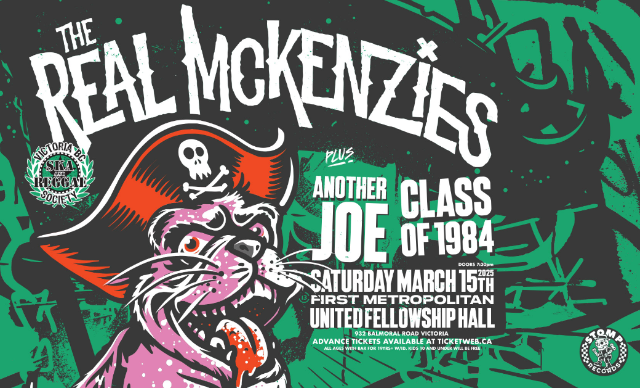 Our friends The Real McKenzies are back! This time they decided to ask their friends Another Joe and The Class of 1984 to join them on Saturday, March 15th at the First Metropolitan United Fellowship Hall (First Met Hall).