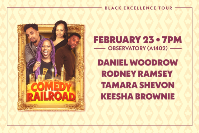 The 14th Annual ‘Underground Comedy Railroad (UCR)’ is a groundbreaking all-black comedy tour, founded in 2012 by Rodney Ramsey and Daniel Woodrow. As Canada's first tour of its kind, UCR has been pioneering the way for Black Canadian comedians to share their unique humour and stories with a wider audience. Each February, to coincide with Black History Month, we embark on a nationwide journey, bringing laughter and thought-provoking entertainment to stages across Canada.