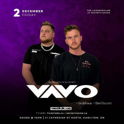 Billboard charting Dance/Pop duo VAVO seamlessly blends the talents of Vancouver native Jesse Fischer and London born Alden Martin. Their song "weekend" has been gaining traction on the Billboard Dance charts.